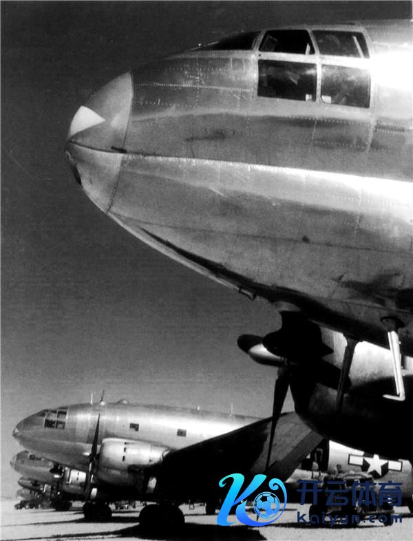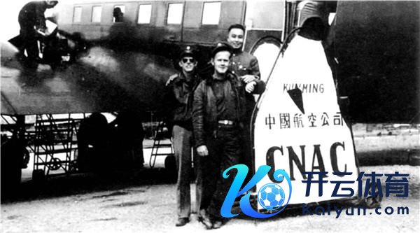 艾里克森-E-谢林(左)在中国航空公司任“驼峰”遨游员本领与我方的C-53运载机、副驾驶和无线电操作员在全部