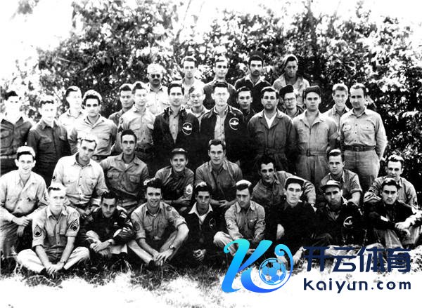 阿诺德-斯皮尔伯格(立正者第一滑右五)与490轰炸机中队的通信队在全部