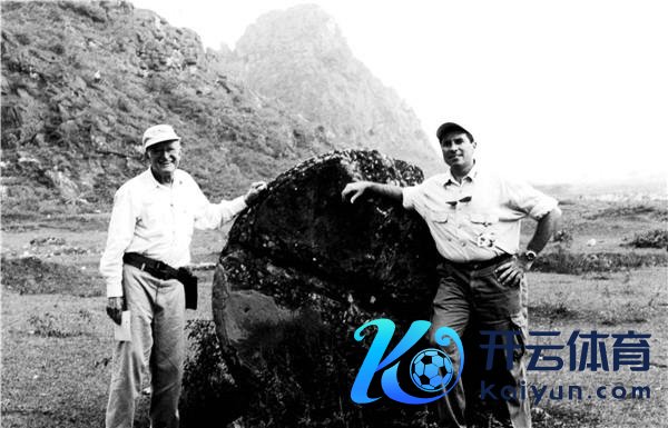 1997年,杰夫瑞-B-格林(右)与“飞虎队”王牌遨游员及“驼峰”遨纪行载创造者“迪克”罗西(左)在桂林原“飞虎队”机场