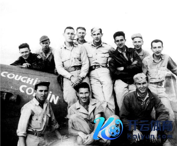 1944年夏,克利夫德-R-隆(后排左一)与25斗争机中队的遨游员在云南驿机场