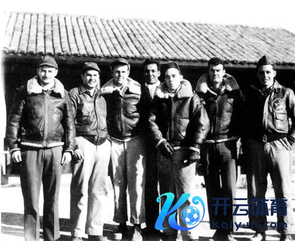 1944年11月,唐纳德-S-洛佩斯(右一)与其他遨游员及地勤东说念主员在芷江