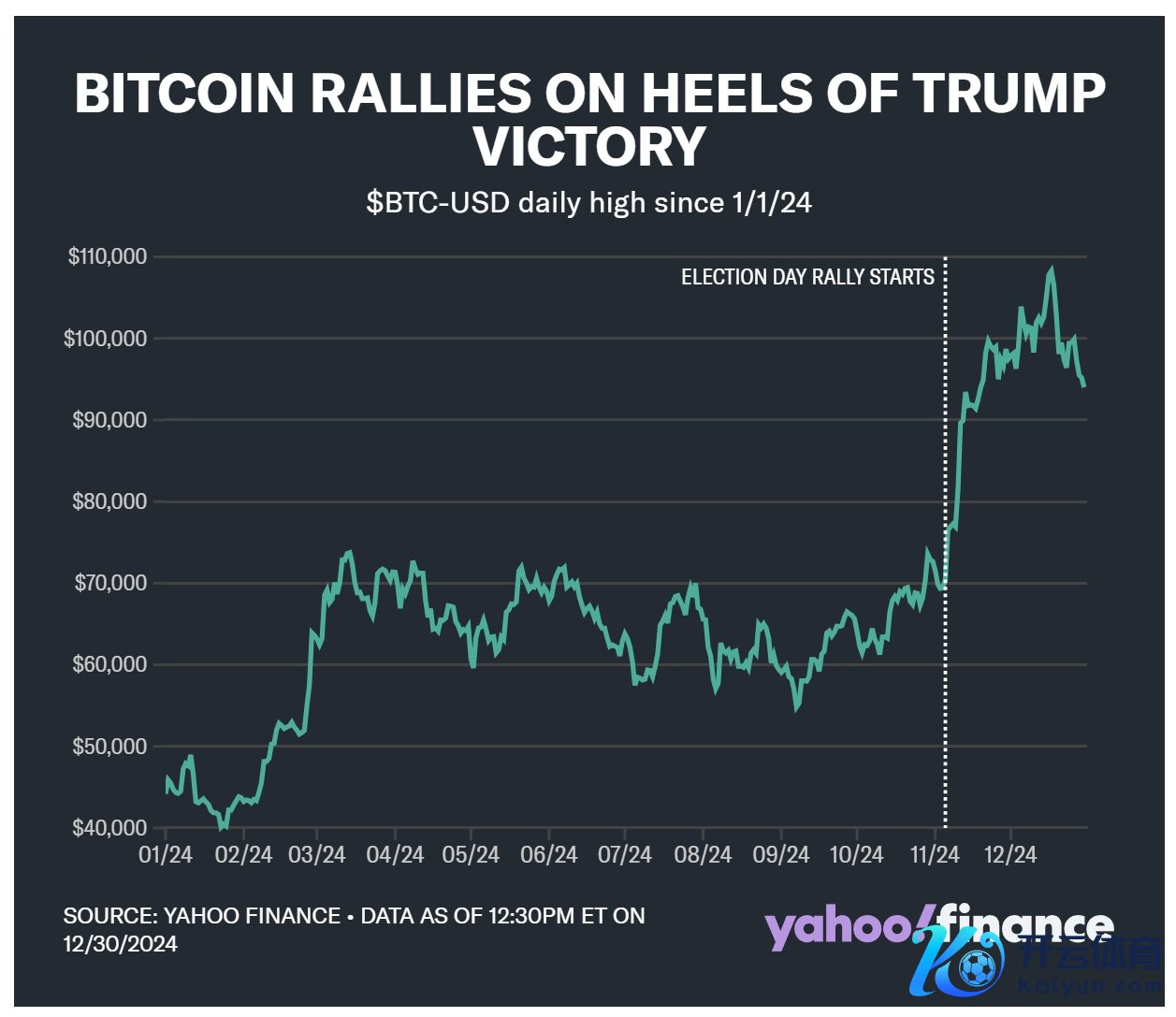 最受迎接的加密货币比特币自11月5日特朗普当选以来合手续进展出色,并于12月4日初次冲破10万好意思元大关。自选举日以来,比特币价钱高潮了38%,本年以来高潮了106%。