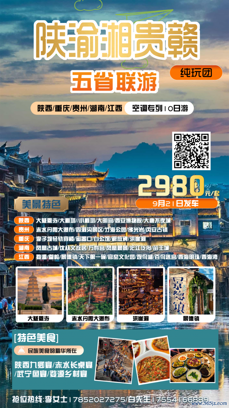 9月21日,一列满载诗意与和蔼的“银发专列”将从青岛城阳站再度登程,开启为期10天的“江山之旅”。此趟旅游专列将领带搭客从十三朝古都西安启程,横跨陕西、重庆、湖南、贵州、江西五省(直辖市),串联起长安古韵、玄幻山城、赤水丹霞、凤凰古城、婺源晒秋等12大秉性景不雅及20余处东谈主文精华,率领搭客在历史长河与山水画卷中开启一场卓越千年的文化对话。